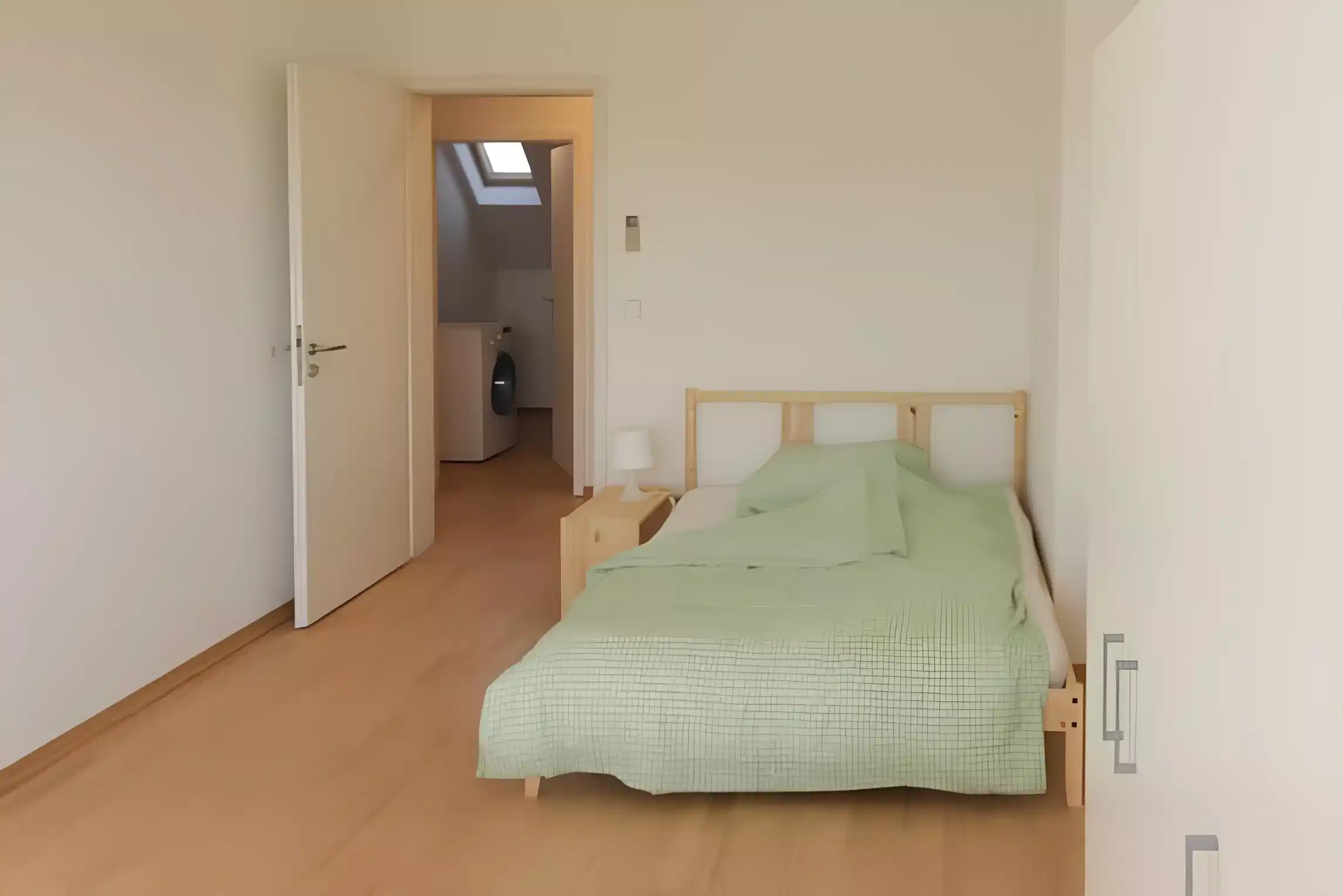 3. Your room also awaits, fully furnished and clean! You will find a bed and bed linens, a bedside table, and a wardrobe in your room. If you book a room larger than 10m2, you also get a desk and a chair. All you need to do is pack your clothes and move into your new property home! Some buildings offer a shared laundry room and others a washing machine inside the flat.