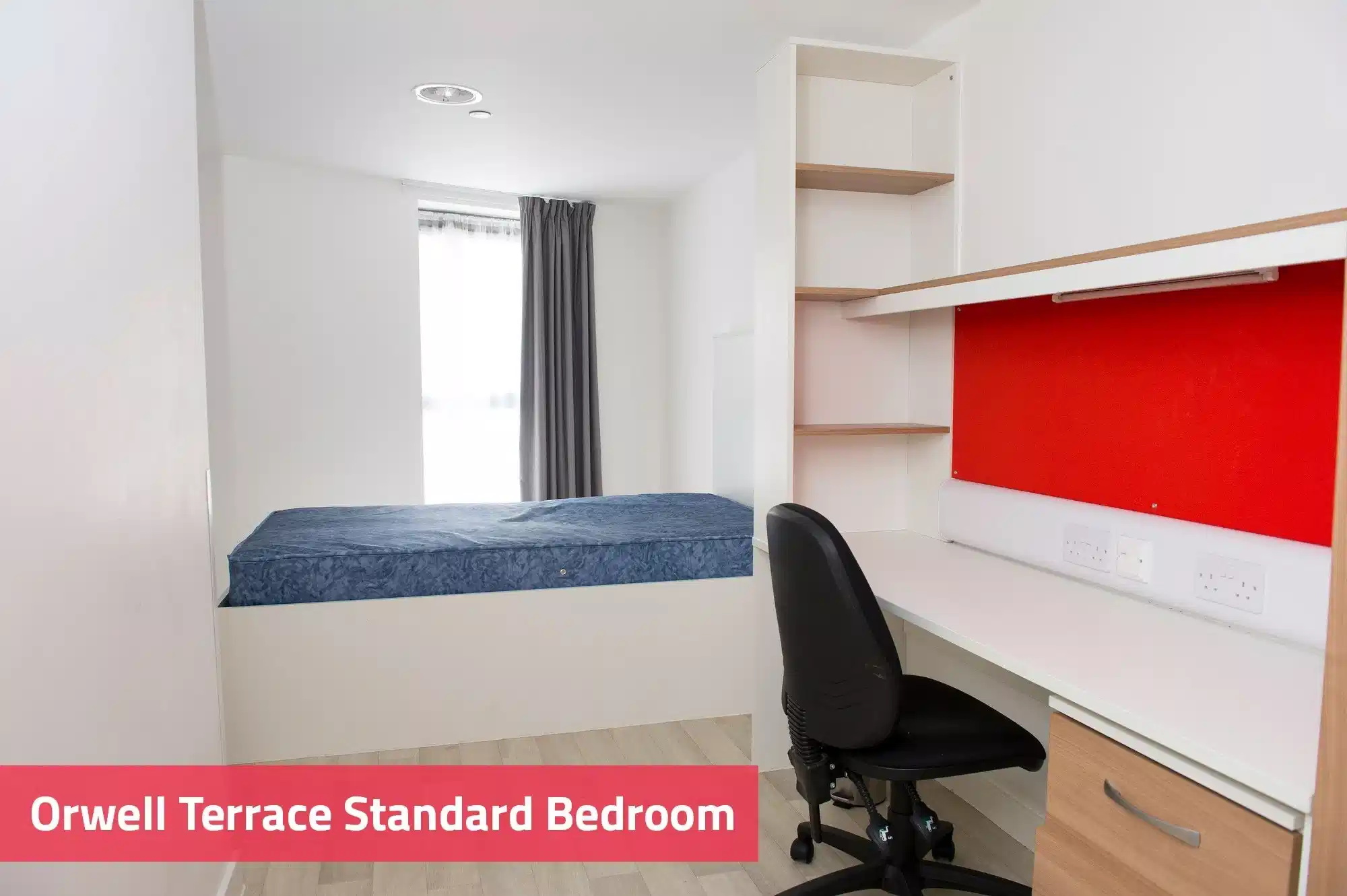 Orwell Terrace Edinburgh features budget-friendly apartments with ample amenities. Students can choose a Twin Bedroom, a Standard Bedroom, or a Large Bedroom. For your personal use, there is a cosy 3/4-size double bed and a spacious wardrobe included. The kitchens come equipped with a cooker, a freezer, a microwave, a kettle, and a toaster. A study chair and a desk make up your workstation. You can also add your favourite titles along with your notes and textbooks to the bookshelves.