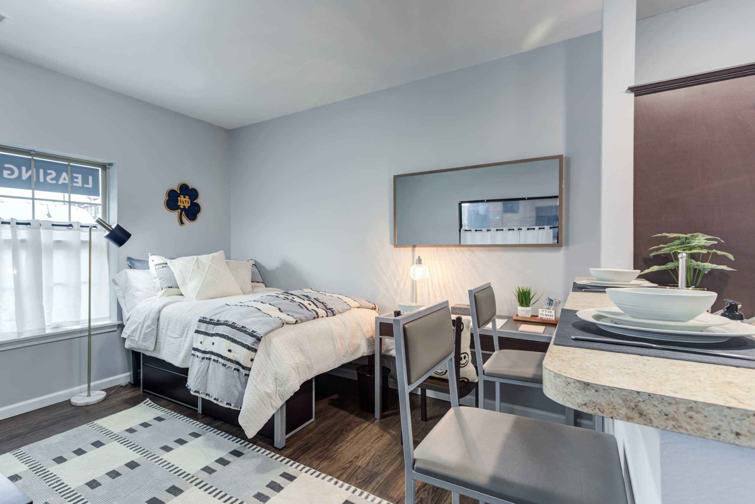 Overlook at Notre Dame ensures a comfortable and convenient lifestyle for students seeking housing in South Bend. With room types like 2 bedroom - 1 bathroom, studio, and 1 bedroom - 1 bathroom units, residents can choose their ideal living space tailored to individual or shared preferences.