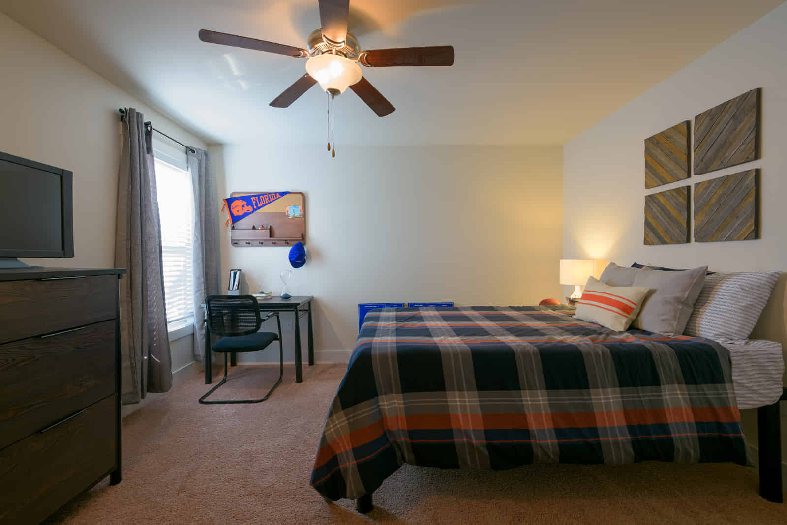 These Gainesville student living spaces include 1 bedroom student apartments in Gainesville FL, or two private bedrooms with shared kitchens and living areas. They suit small groups or students wanting a quieter setup.