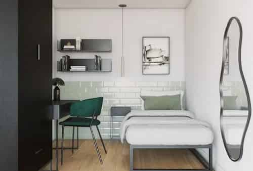 2. Micampus San Mames: It offers a thoughtful blend of bedroom apartments and ensuites, ensuring a conducive environment for students from around the world. Micampus San Mames offers essential amenities for student living, including a spacious wardrobe for storage, a sturdy desk for studying, and shelves for organising belongings. Additionally, students have access to a shared equipped kitchen, facilitating convenient meal preparation and fostering a sense of community through shared cooking experiences.