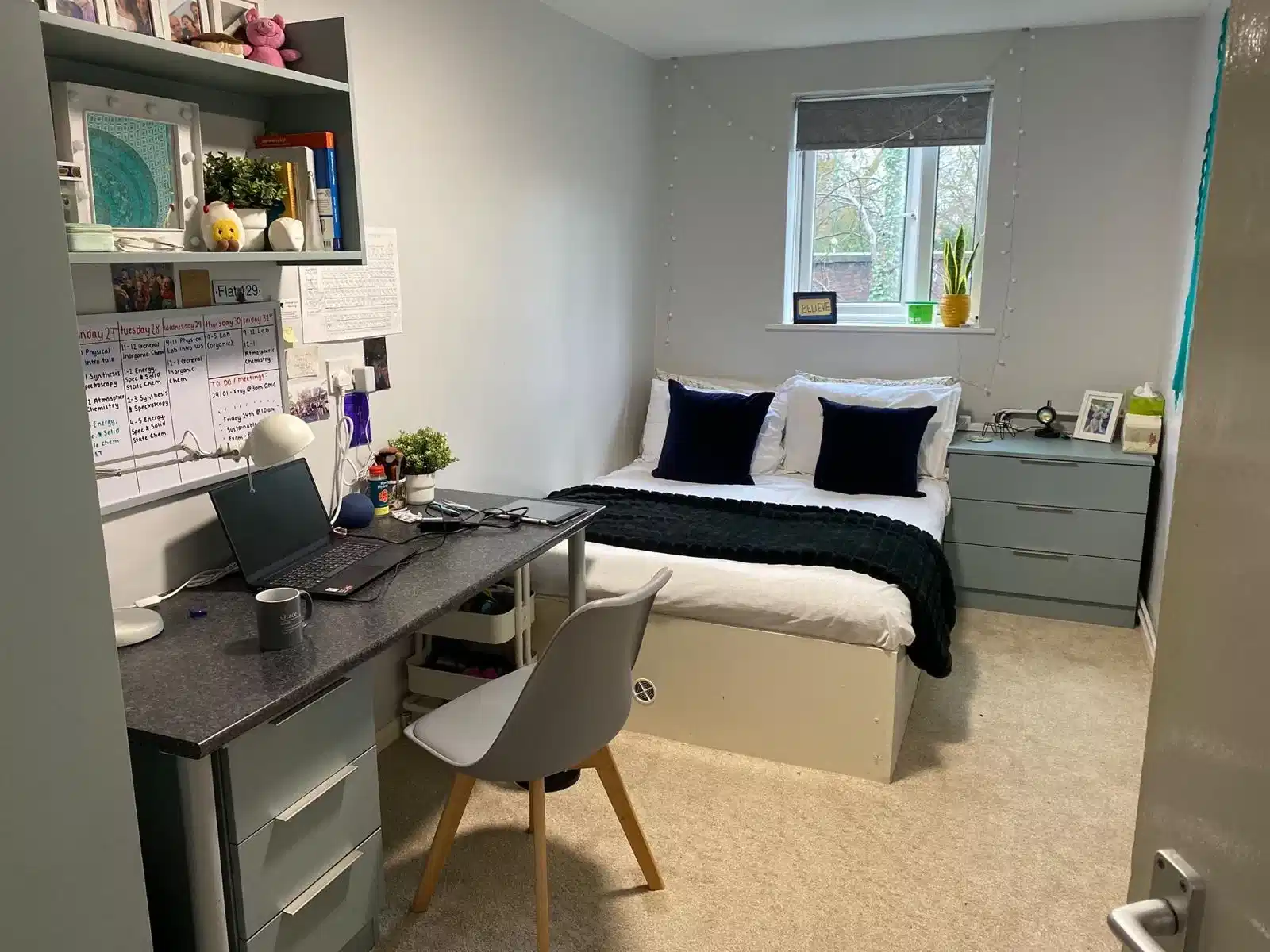 Most options for student accommodation near University of Nottingham typically include high-speed Wi-Fi, electricity, heating, and water. On-site laundry facilities with washing machines and dryers are commonly available. Common areas such as lounges, study rooms, and social spaces are also provided by most student accommodation near University of Nottingham options. Security is a priority, with secure entry systems and 24/7 security staff ensuring safety.