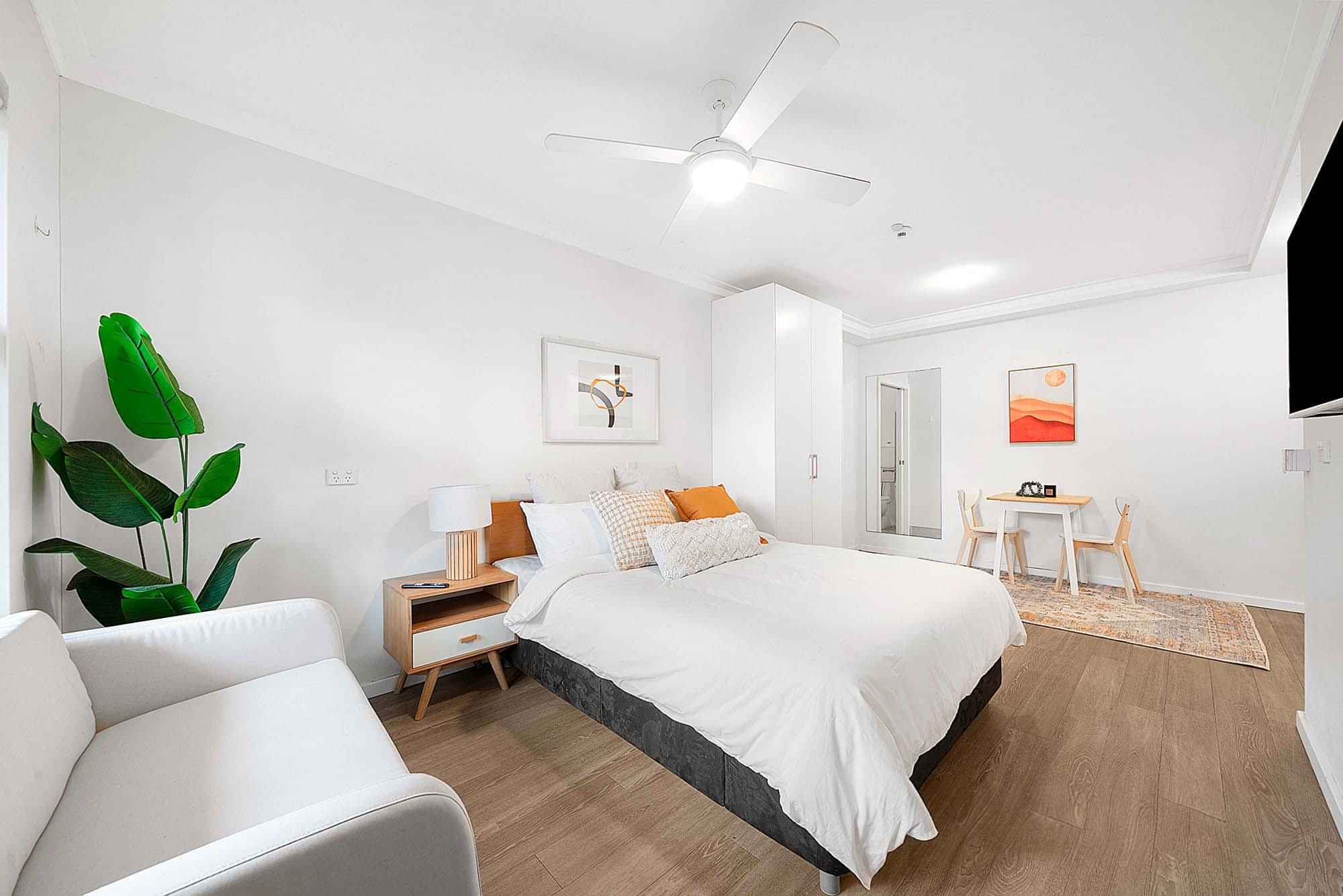 Embark on a seamless experience at Sharesorted Redfern, Sydney, a perfectly designed student accommodation situated in the vibrant neighborhood of Redfern. At Redfern student accommodation, students can choose a comfy Studio that comes with a host of amenities, ensuring a comfortable stay while pursuing academic ambitions. Each studio at Redfern student living is equipped with a kitchen with modern appliances, including a fridge and stove top, offering the ideal setup for whipping up delicious meals. Additionally, ample cupboard space helps keep your belongings organized. For those laundry days, there's no need to stress as the property provides convenient on-site laundry facilities. Additionally, stay connected with your peers and loved ones with complimentary high-speed NBN internet available throughout the premises.