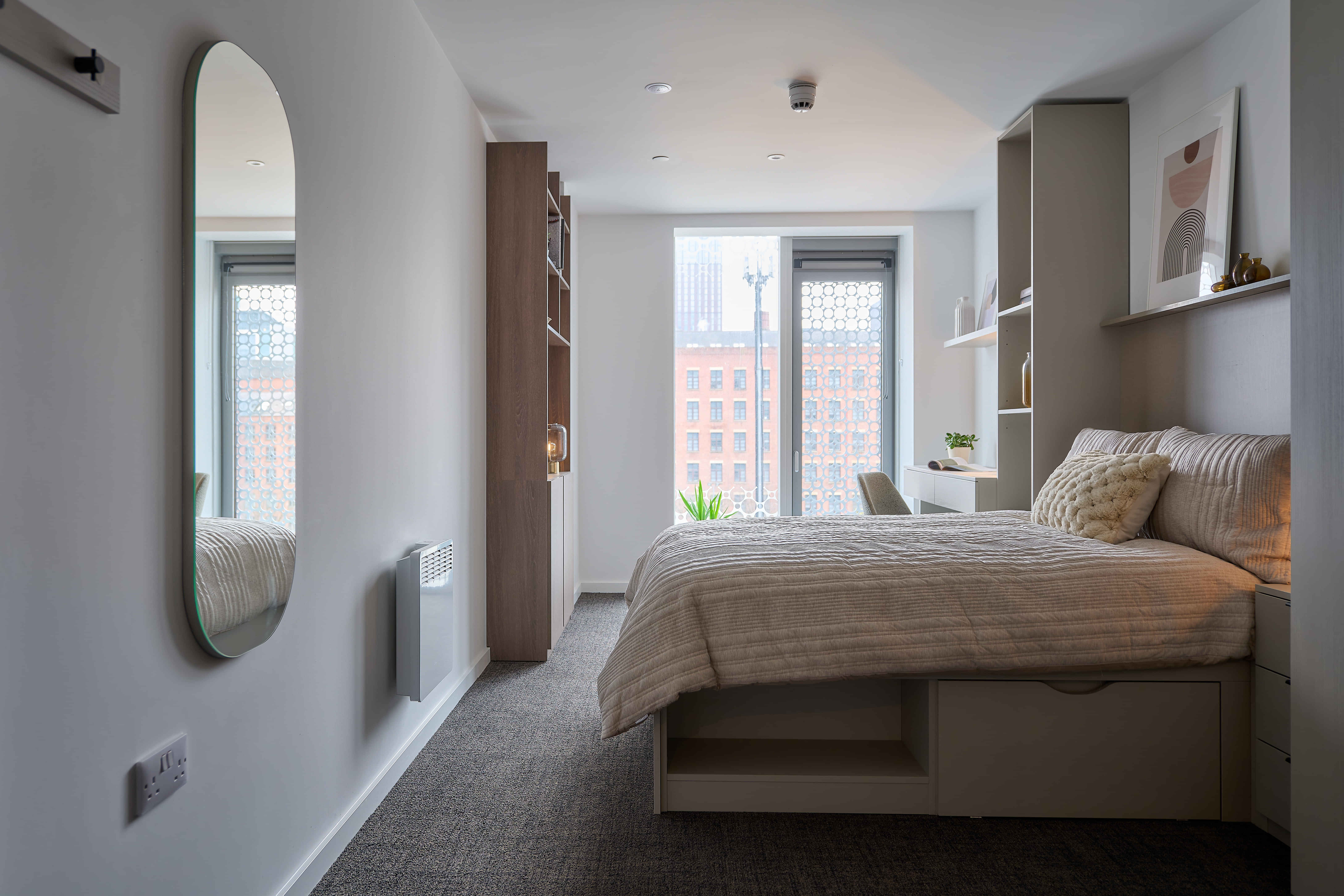 Manchester is a great spot for budget-conscious students. You can find affordable student house options in Manchester without draining your wallet or relying on student loans. Manchester offers many affordable accommodation options. Amber helps you find the best flats in Manchester with amenities like study spaces and other shared facilities. Essential utilities such as high-speed Wi-Fi and contents insurance are common in university halls and private PBSAs, often included in bills. Private Student Accommodation (PBSAs) are purpose-built blocks managed by private companies, offering a range of room types like studios and en-suites. Your accommodations often provide on-site staff teams that are ready to assist students at all times. You can sort by price using filters. The listings for Manchester student housing are clear, so you know exactly what you get for your money. Here are some options for affordable student housing in Manchester.
