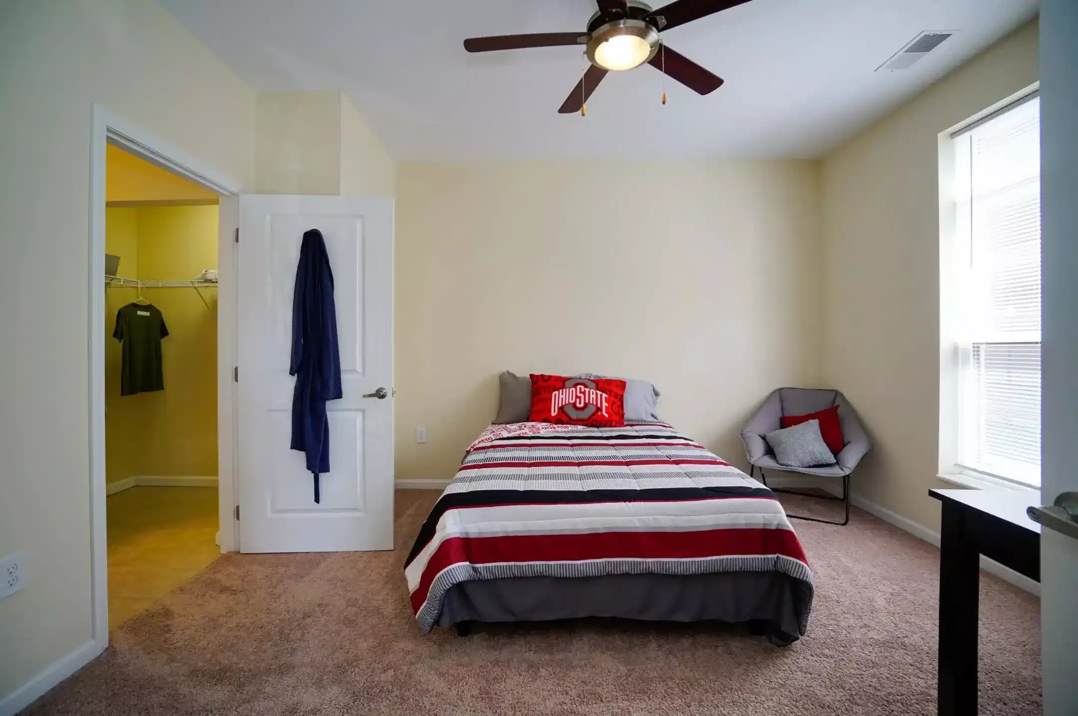Shared Columbus student accommodation has private bedrooms for each person. They also include common areas like the kitchen, bathroom, and living room that roommates share. This layout of Columbus student housing is ideal for those who want space in their bedrooms and shared social areas.
