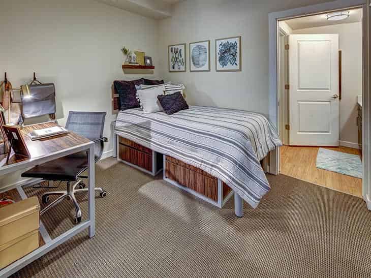 4. 1, 2, and 3-Bedroom Apartments: These student apartments in Austin TX are larger spaces designed for students who want to live with friends or roommates. Each apartment typically has private bedrooms, shared living areas, and often, a shared bathroom, making it easier to split costs while still having your own space. If you want to live with roommates or friends with both privacy and a sense of community, you can then this is your best bet.