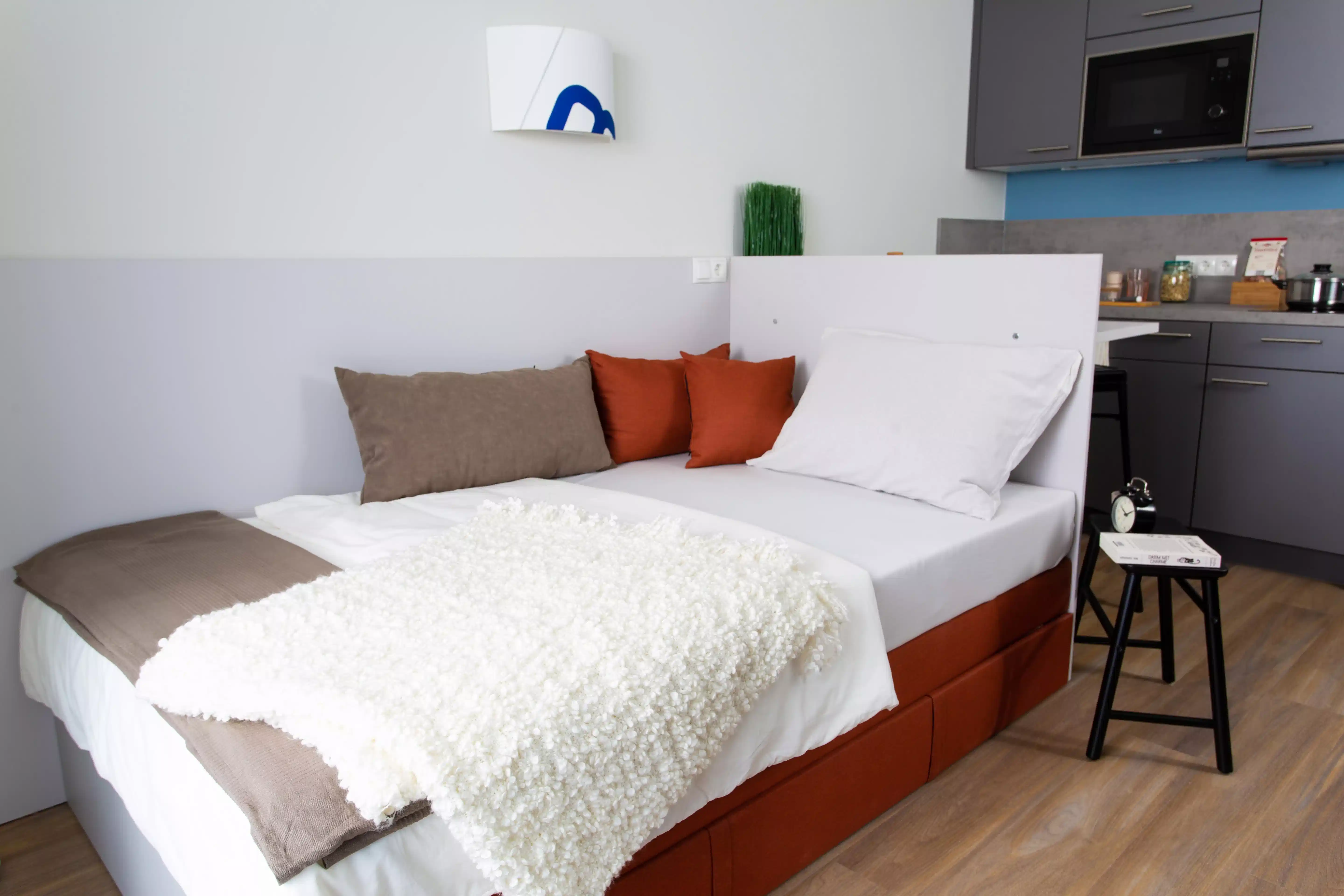 Studio apartments are fully private units with a bedroom, kitchenette, and bathroom all in one space. They offer full independence and are ideal for students who want quiet, personal living without sharing facilities. Many studios include Wi-Fi, basic furniture, and access to laundry rooms.
