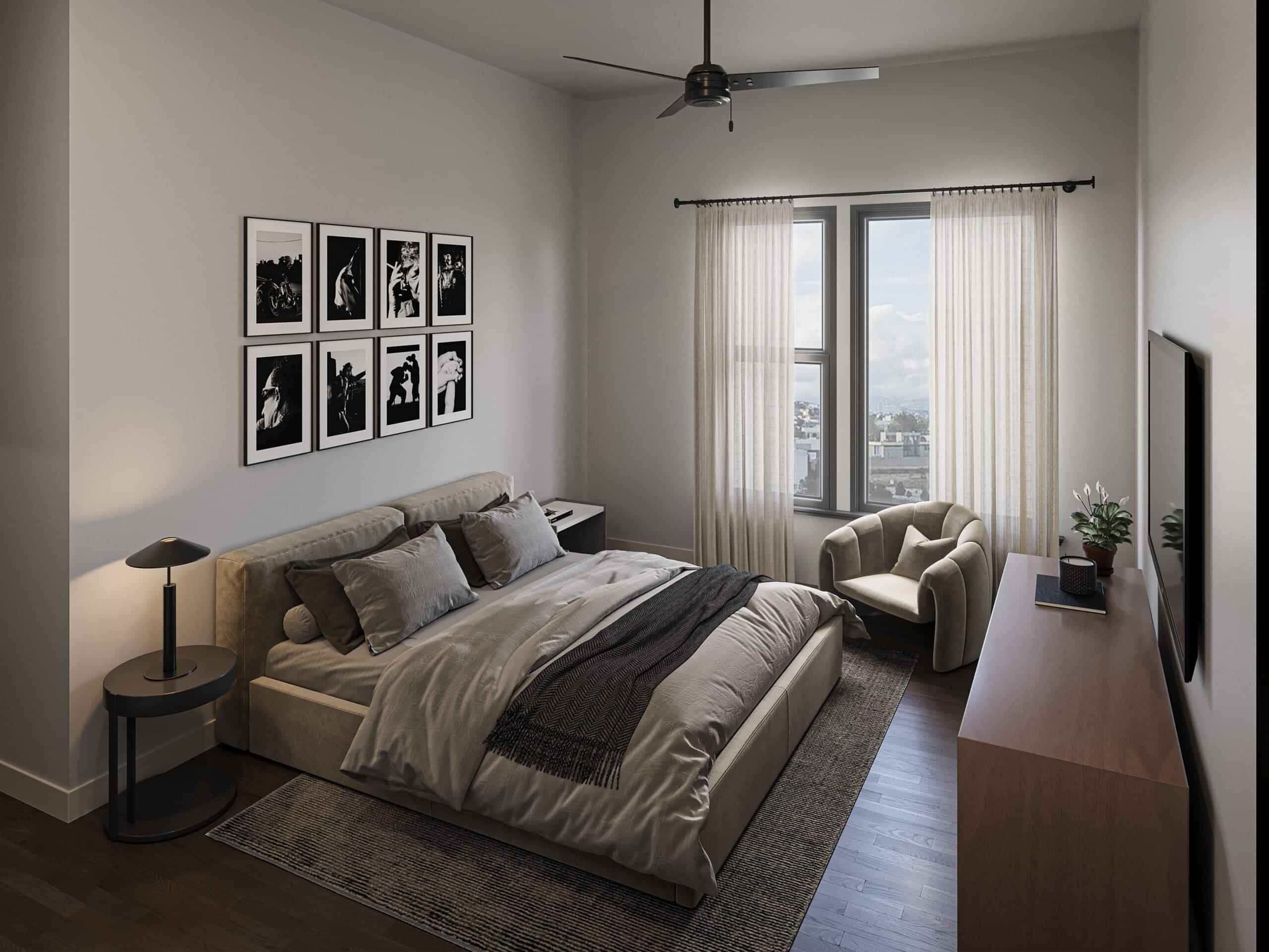 At The Josephine San Antonio, students will find a variety of room types to choose from, including 1 Bed 1 Bath, 2 Bed 2 Bath, 3 Bed 2 Bath, and Studio options. Each unit at this premium apartment near UTSA is equipped with cutting-edge electronic smart door entry, and smart thermostat systems for modern living convenience. Apartments offer beds for restful sleep and elegant bathroom tiling for a modern and clean aesthetic. The living spaces are amplified by oversized windows that invite plentiful natural light. Kitchens are designed with quartz countertops and feature kitchen islands with USB ports. Under-cabinet LED lighting adds a touch of elegance, while the whirlpool stainless steel appliance package and stainless steel under-mount sink and gooseneck faucet underscore the premium feel of the accommodation. Residents can keep clothing and linens organized in expansive walk-in closets with wood shelves and shoe shelving, and oversized pantry, and linen closets. For laundry needs, washer and dryers are a convenient addition, ensuring residents don't need to leave their homes for laundry services. Meanwhile, the wood-inspired flooring throughout the units provides a warm and sophisticated touch.