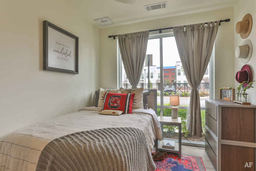 Private rooms in Columbia SC student apartments typically include a bed, study desk, and sometimes a private bathroom.