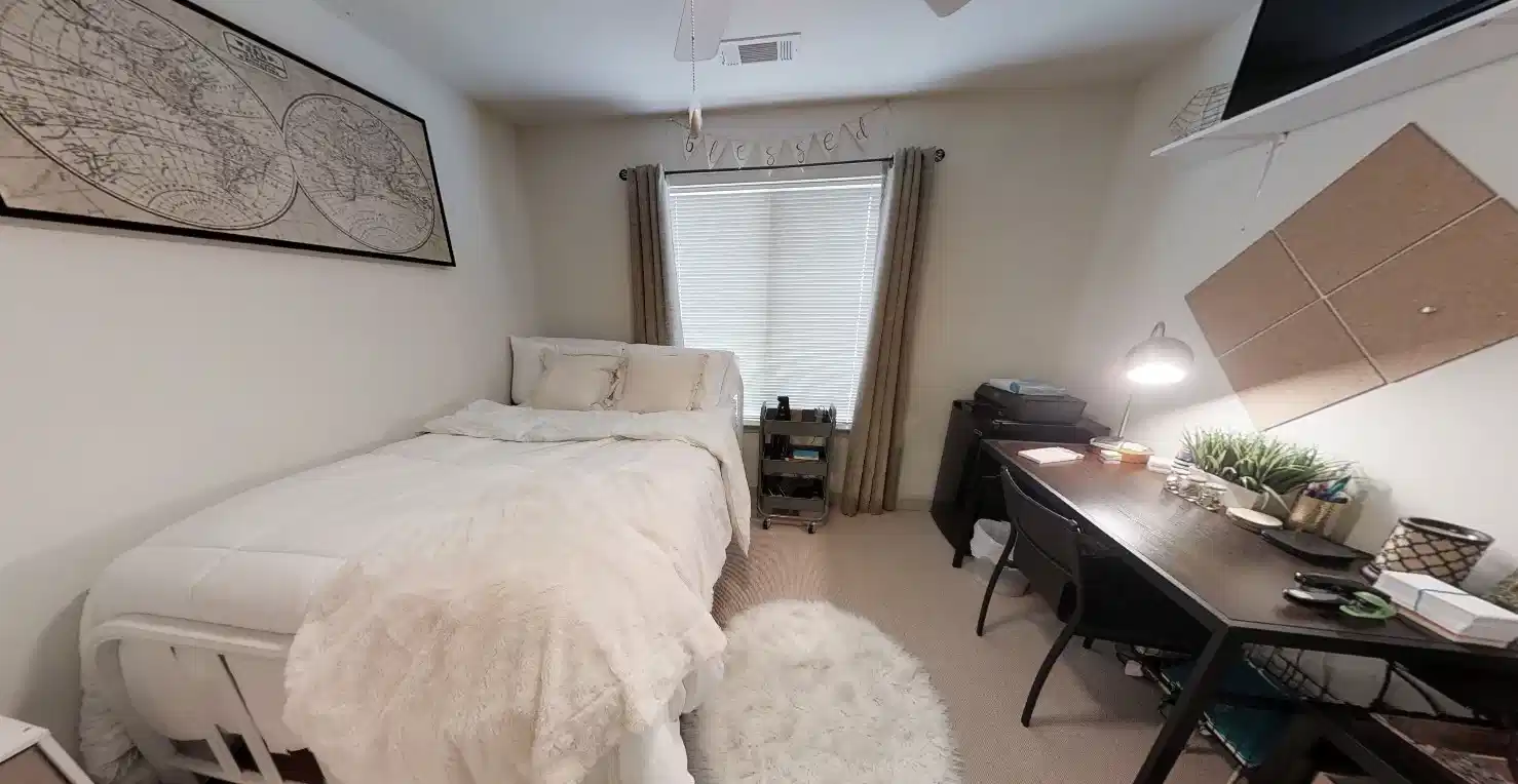 Private rooms offer a personal bedroom and private bathroom equipped with essentials like a study desk and bed, while still providing access to shared facilities. This option for San Marcos student housing apartments strikes a balance between independence and social interaction, appealing to students who want their own space but enjoy the benefits of a shared living environment.
