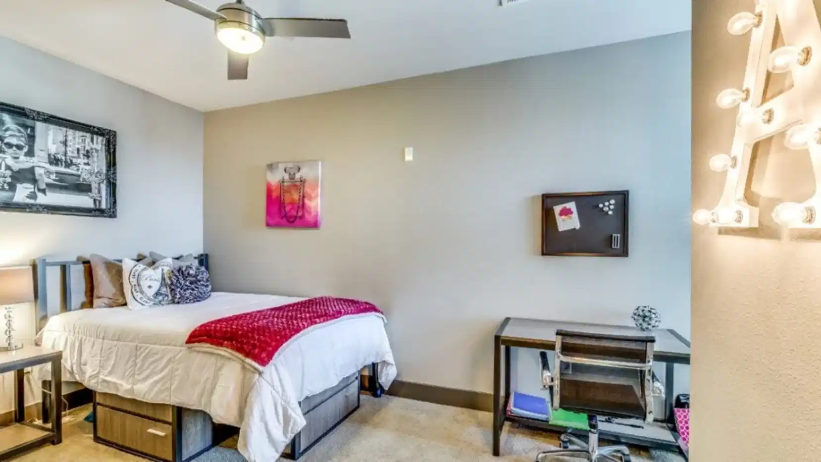 Private rooms in Columbia MO student apartments typically include a bed, study desk, and sometimes a private bathroom.