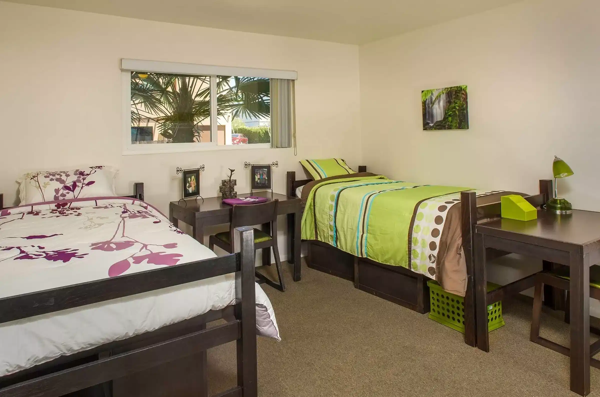 At Tropicana Villas Santa Barbara, students can choose from spacious 2 Bed 2 Bath rooms that come with a private bathroom and a shared kitchen, designed to balance privacy with community living. Each room is thoughtfully furnished to provide both comfort and functionality, creating a welcoming space where students can focus on academics and unwind after a busy day. The shared kitchen allows residents to prepare their own meals with ease, promoting independence and a homely environment. These apartments are ideal for students who value personal space while enjoying the perks of a shared living experience within a supportive community.