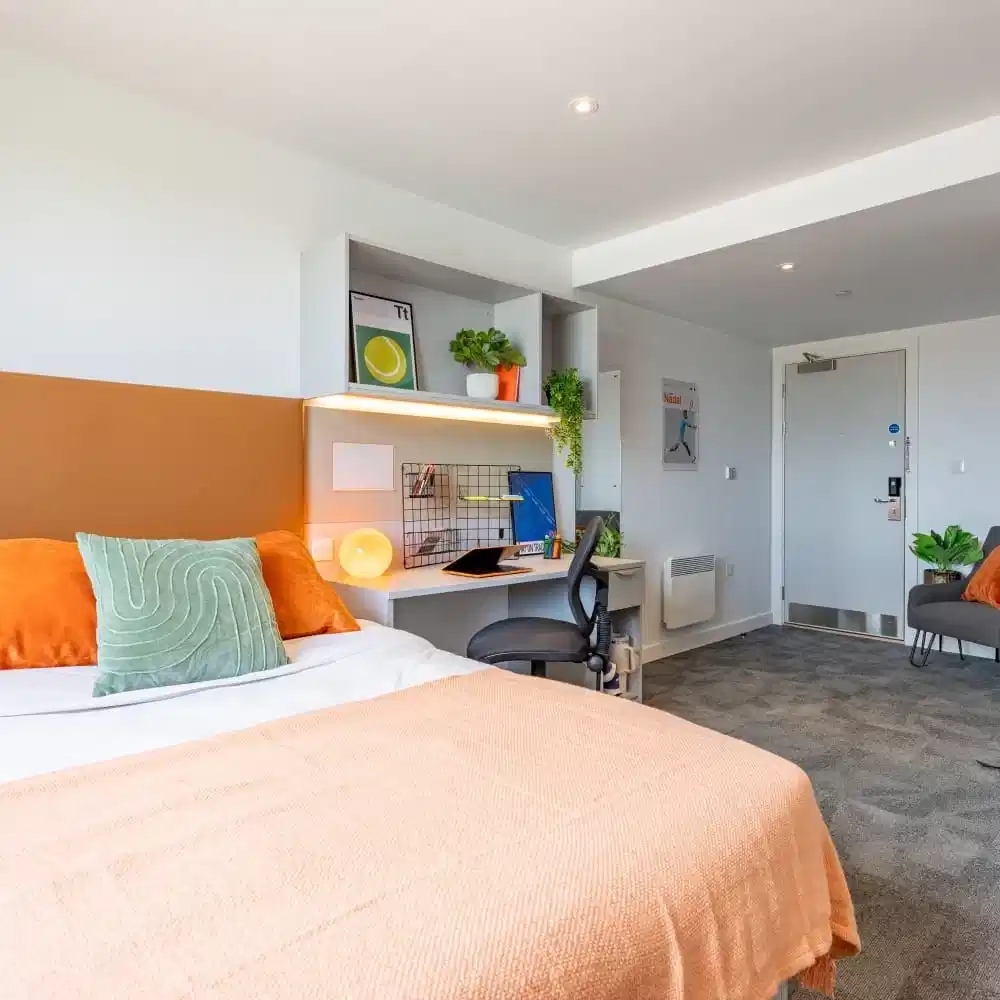 3. Studios: Self-contained student accommodation in Salford units featuring a bedroom, private bathroom, and kitchenette. They’re among the most popular options for student accommodation near Salford University.
