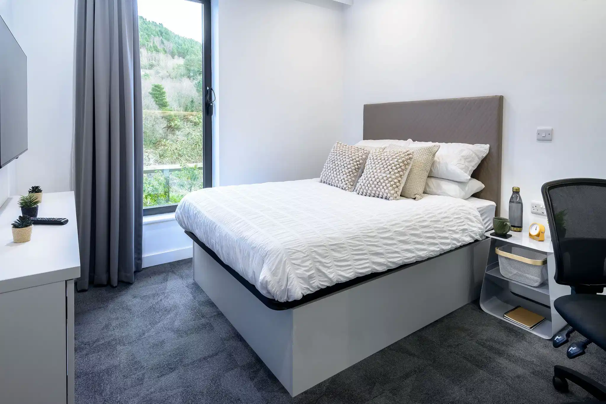 True Student Swansea is a place where students can stay at a home away from away. True Student Swansea offers a lot of options for the students, such as True Studio River View, True Studio, and True Accessible Studio River View. The cosy room is designed for comfort and convenience, featuring an array of modern amenities to enhance your stay. Enjoy a refreshing Rainfall Shower and get ready in style with a Backlit Mirror and full-length mirror. Relax on a comfortable Double Bed with A True Mattress, perfect for a restful night’s sleep. Stay entertained with a Smart TV and stay productive at the Desk & Chair. The kitchenette is equipped with a Microwave, Grill, Hob, Fridge, Freezer, and Sink, making meal prep a breeze. Ample storage options are available at True Student Swansea, including a Wardrobe, Drawers, Storage Space, and under-bed storage to keep your belongings organised. Stay connected with complimentary Wifi, ensuring you’re always in touch with the world.