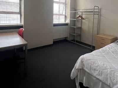 UniLodge Stafford House Wellington offers a modern living experience with a range of amenities. The building features secure swipe card access and security cameras for safety. Inside, students have access to various communal spaces, including lounges, a games room, and outdoor areas with barbecue facilities and a courtyard. For convenience, there are on-site staff and laundry facilities available. UniLodge Stafford House Wellington also provides bicycle parking and is wheelchair accessible with elevators. With high-speed internet, wireless connectivity, and vending machines for quick snacks, this residence caters to students seeking a comfortable and well-connected living environment. Utilities like WiFi, water and electricity are rent-inclusive.