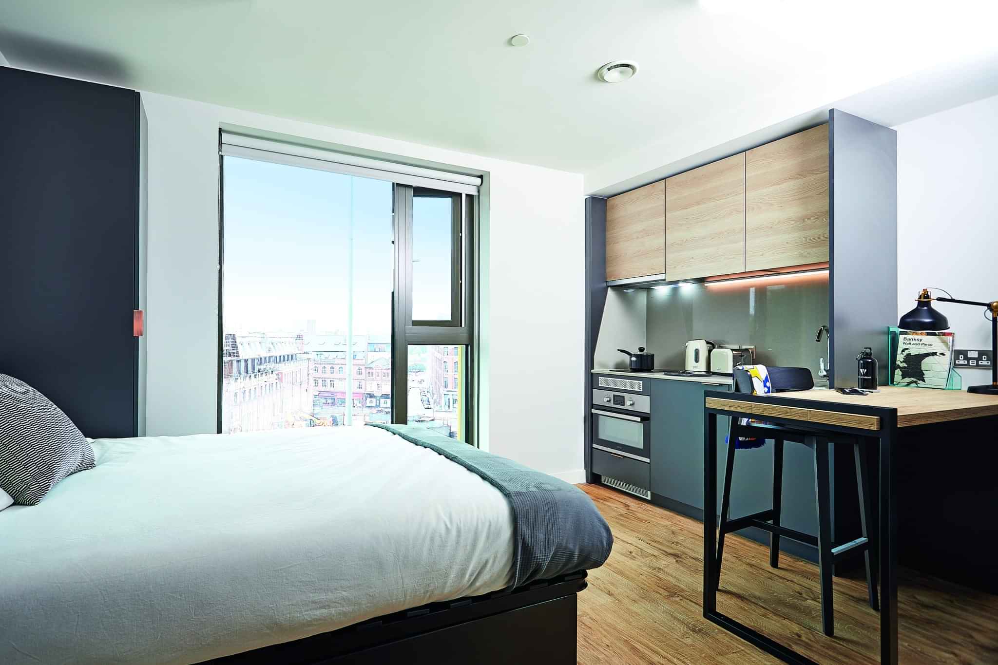 Studios in Leeds are self-contained units with a private bedroom, bathroom, and a small kitchen area, perfect for those who want complete independence. Student studios in Leeds offer maximum privacy without shared spaces, making them ideal for students seeking an all-in-one living area.