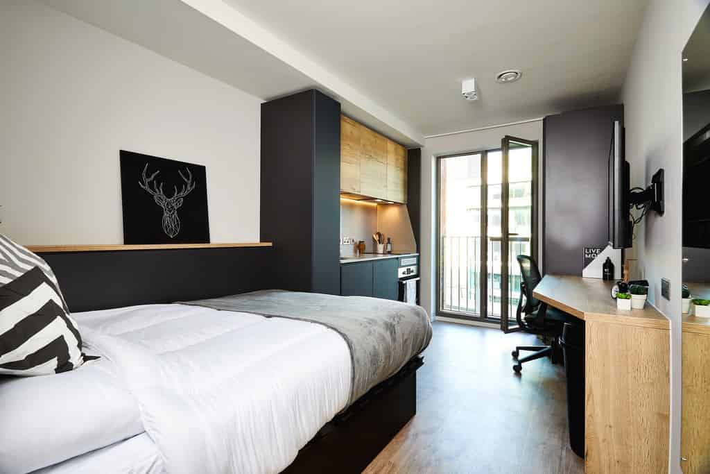 While property rooms include all main kitchen appliances and furniture, you’ll need to bring your own utensils and kitchenware, kettle and toaster, bedroom furnishings, such as towels, duvets, and pillows. However, if you’ve booked a room with property you can order one of property kitchen and bedding packs, which delivers all the essentials to your room before you arrive.