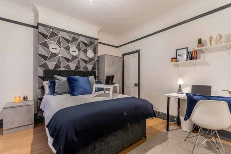 Compared to other room types, non-ensuites are a budget-friendly option for students. These rooms come with a private bedroom, while the bathroom, kitchen, and living spaces are shared with housemates. This setup ensures affordability without compromising personal sleeping and study space, making it a popular choice in student houses in Leicester.