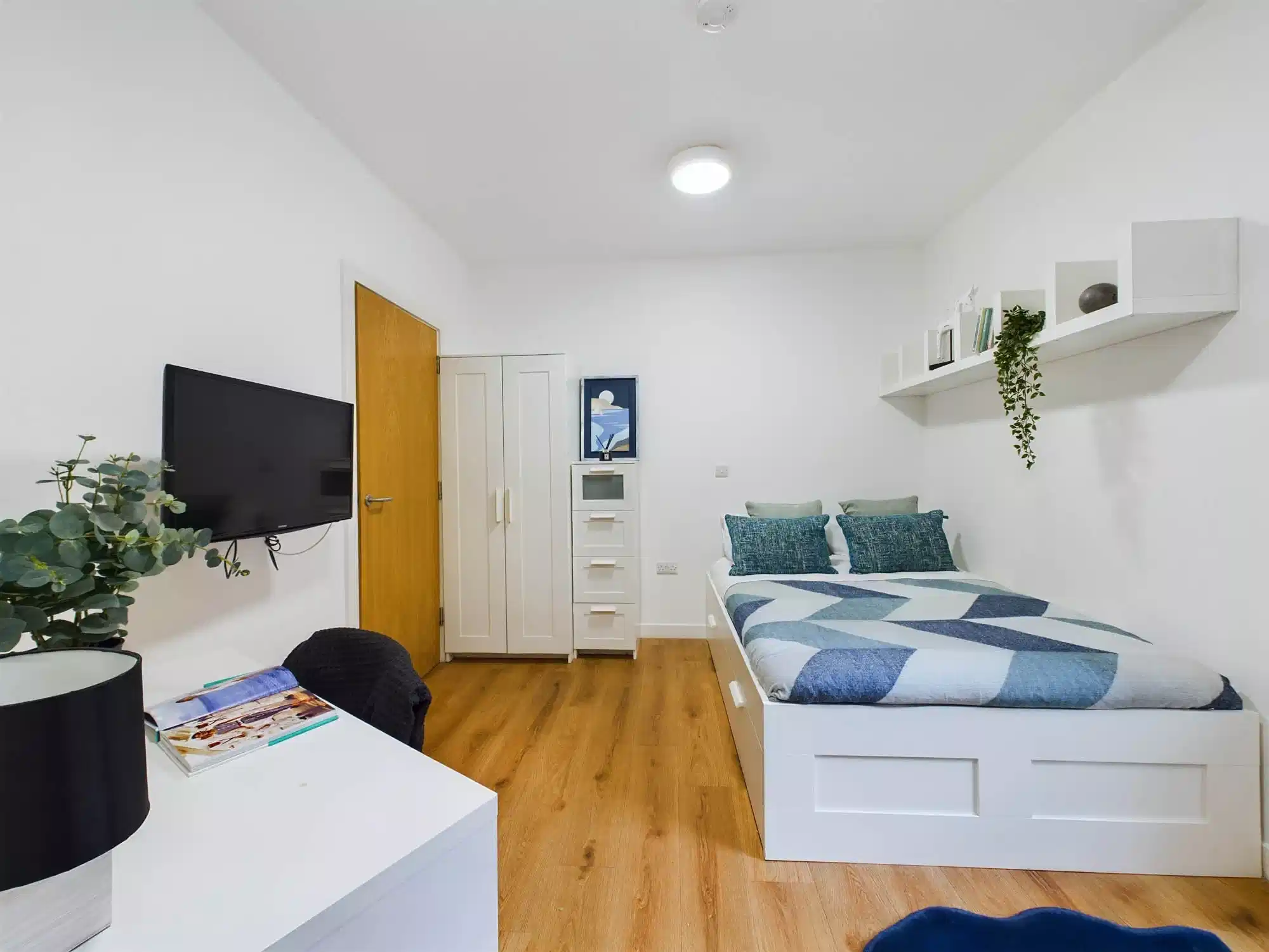 X1 The Edge Liverpool offers students a comfortable and well-equipped living space which offers room types such as the Ensuite Standard Room and Ensuite Deluxe Room. Each room comes furnished with a bed, desk and chair, providing a conducive environment for study and rest. Students enjoy the convenience of a fully fitted communal kitchen, perfect for preparing meals and socialising with flatmates. X1 The Edge student accommodation features ensuite standard rooms, each boasting a private ensuite bathroom for added privacy and comfort.
