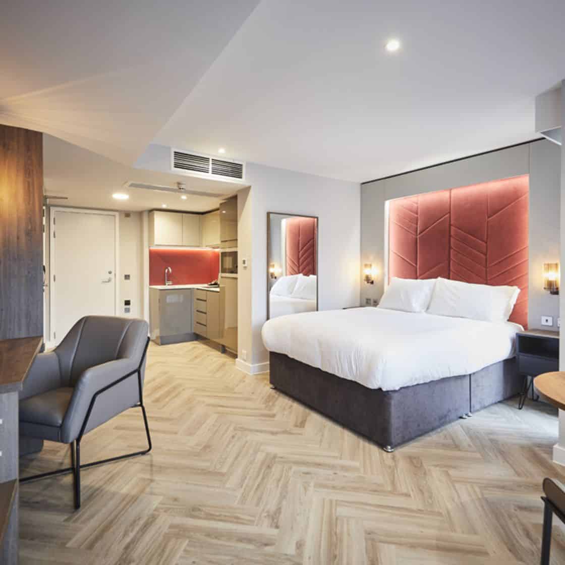 At Iconinc York City, you can live in the Smart Studio Apartment that comes with many amenities. The king-size bed comes with 2000 pocket sprung mattresses for a comfortable sleeping experience. The fully fitted kitchen comes with a fridge, a freezer, a hob, crockery, and cutlery. This ensures a good and complete cooking and eating experience. The bathroom has a rainfall power shower, a de-mist mirror, and White Company toiletries for a hygienic routine. Your workspace is made of a desk & a chair.