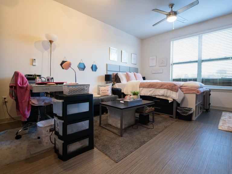 Experiencing student life at Yugo Memphis Southern is an integration of comfort and convenience that caters to every student's needs. This premium Memphis off campus housing offers a variety of room types such as 2 Bed 2 Bath Classic, Studio apartments, 2 Bed 2 Bath Plus, and 3 Bed 3 Bath units. Fully furnished apartments feature convenient amenities like a dishwasher and washer/dryer. Select units boast patios offering personal outdoor space for relaxation or study. Rent includes major appliances, cable, internet, water/sewer, and trash services, ensuring a hassle-free experience. Access state-of-the-art amenities 24/7 via secured fob access, including furniture within the apartment. Join the exciting community and take advantage of on-site parking & maintenance, and bike racks for convenience. Start your day right with a visit to the coffee bar or catch a movie in the theater. Stay active and refreshed with a dip in the pool or a workout in the 24-hour gym. At Yugo Memphis Southern, safety is a priority with controlled access to the property, providing peace of mind for residents and their belongings. Experience the best of Southern hospitality and modern living at Yugo Memphis Southern apartments β your home away from home in Memphis.