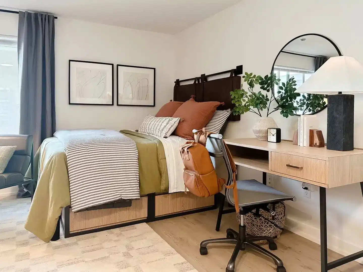 Private rooms in Seattle student apartments typically include a bed, study desk, and sometimes a private bathroom.
